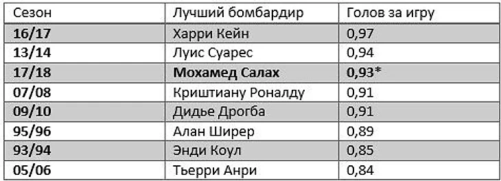 Салах лидирует в списке бомбардиров, забивших больше 5 голов в АПЛ на данный момент.