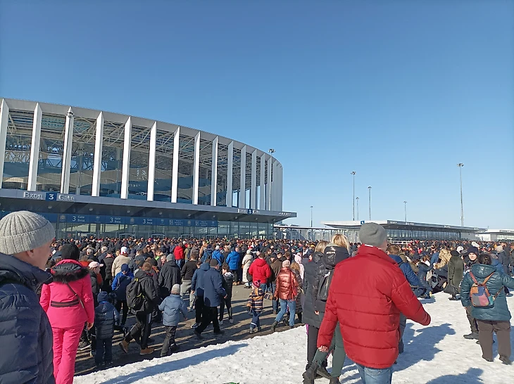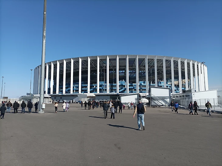 19 марта 2022 года в Нижний Новгород в рамках 22 тура РПЛ приехал самый титулованный клуб России по количеству побед в национальном чемпионате - московский "Спартак". Проживая в этом прекрасном городе-юбиляре на Волге, я не мог упустить такую возможность посетить сие событие. К тому же, наконец, мой подарок на 23 февраля отцу, в виде билета на матч, был реализован. Погода также нам благоволила: было солнечно без порывистого ветра и температура воздуха к 14-00 превысила 0 ℃ .