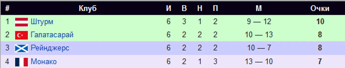 Сезон 2000-2001 годов подарил нам сразу несколько аномалий. Первая из них состоялась в квартете “Монако”, “Галатасарай”, “Рейнджерс”, “Штурм”, где все участники поочередно отнимали очки друг у друга, но австрийцы синхронно уступили монегаскам и шотландцам на выезде 0-5, при этом регулярно побеждая всех конкурентов на своем поле. У стамбульцев единственный разгром произошел в Граце, в остальных встречах виктории давались с минимальным преимуществом. В результате это “винегрета” первым с 10 очками стал “Штурм”, а следом за ним последовал “Галатасарай” с 8 пунктами. Турки опередили “Рейнджерс” лишь по дополнительному показателю (большее количество очков в личных встречах). Пока это единственный случай в Лиге чемпионов, когда более успешные команды в квартете обошли менее успешных, имея отрицательную разницу забитых и пропущенных мячей. А два “неудачника” напротив забили больше чем пропустили. Парадокс.