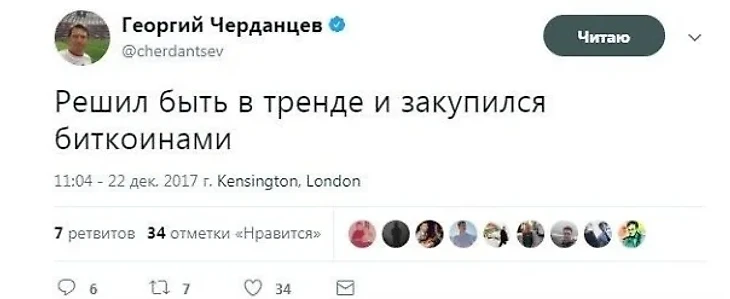 Далее в конце 2017-го Георгий решил купить биткоин, о чем открыто заявил в своих соцсетях. А уже 22 декабря курс самой популярной криптовалюты рухнул до 15000 долларов США на торгах и смог вернуться к прежним значениям лишь спустя почти 3 года.