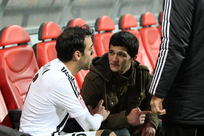 Защитник "Нефтчи" Эльвин Юнусзаде общается Нурланом (2014)