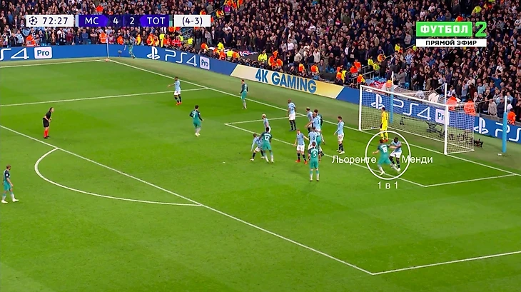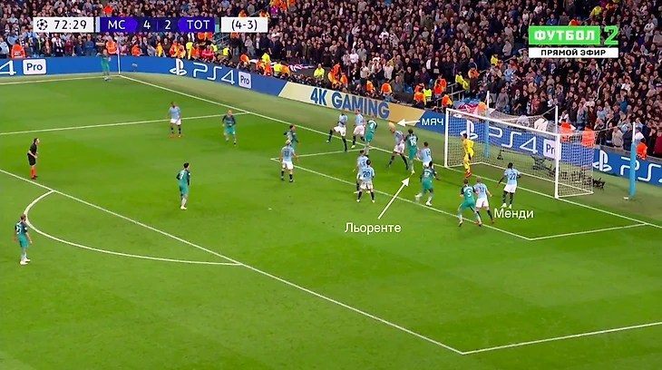 «Сити» использует зонную оборону при угловых. Менди опекает Льоренте «один в один»