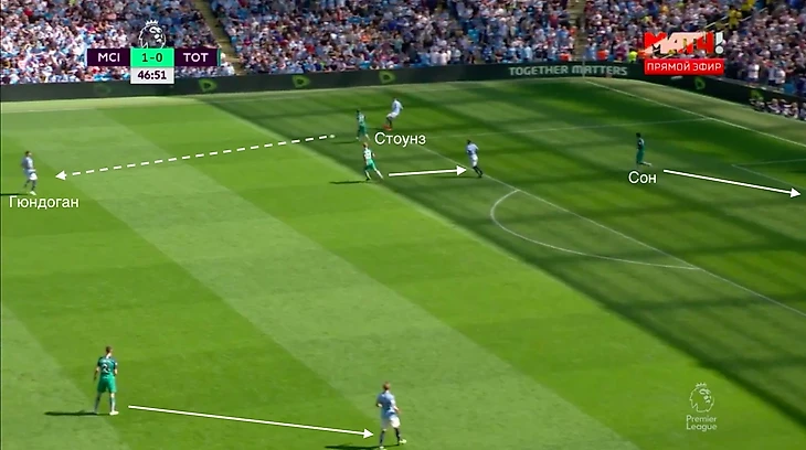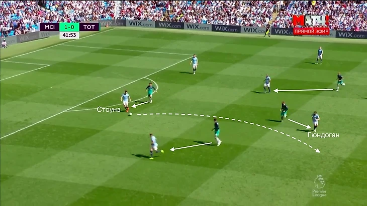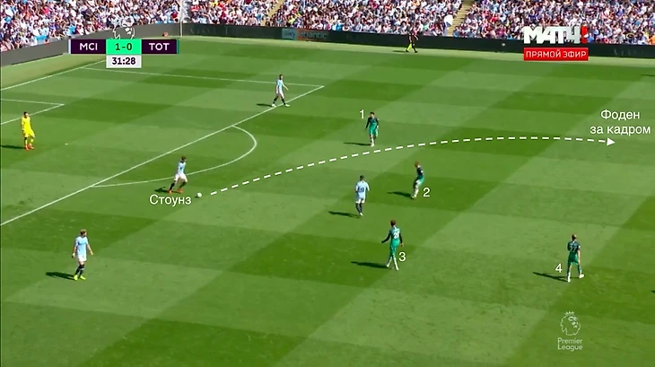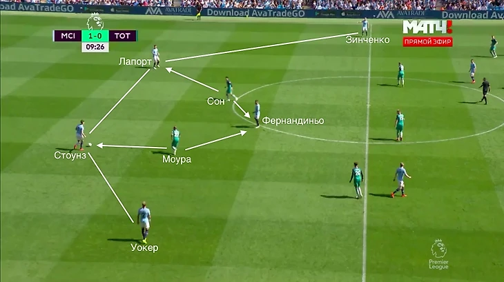 В последнем примере игроки «Тоттенхэма» сыграли не организованно. На Стоунза никто не выдвинулся, а к Фодену не оттянулся.