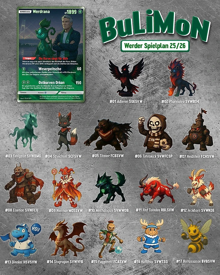 «Вердер» показал своё расписание предстоящего сезона Бундеслиги, представив соперников в виде Покемонов
