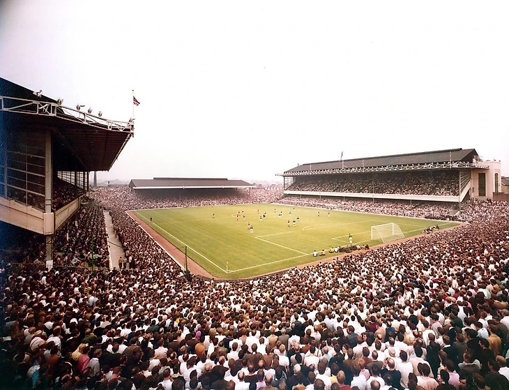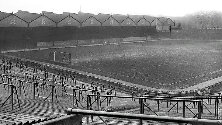 Заполняемость «Хайбери» в послевоенные годы. Уже тогда в Англии реконструировали и строили стадионы без беговых дорожек.