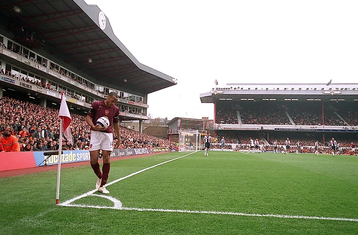 Атмосферное фото с матча, любимчик местной публики Тьерри Анри собирается подавать угловой. Кстати, по опросам болельщиков «Арсенала», данная форма по сегодняшний день остаётся одной из самых красивых за всю историю клуба!