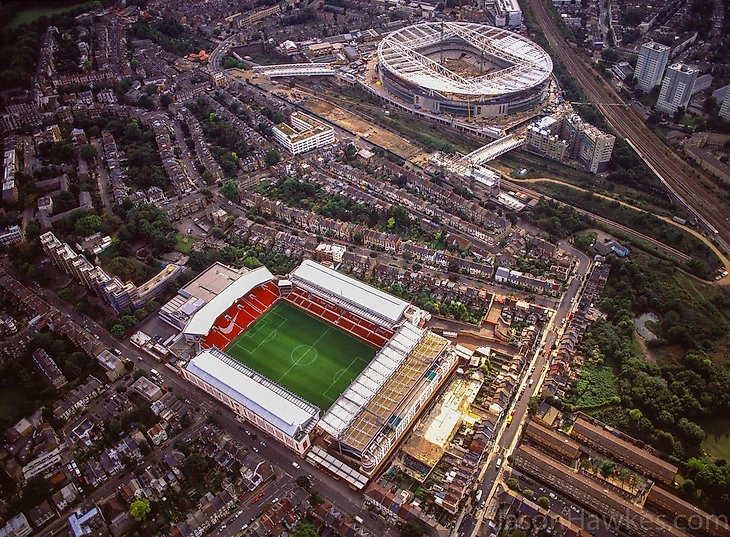 Вид с высоты птичьего полёта. Через пару кварталов от «Хайбери» заканчивается строительство будущего стадиона «Арсенала» – «Эмирейтс».