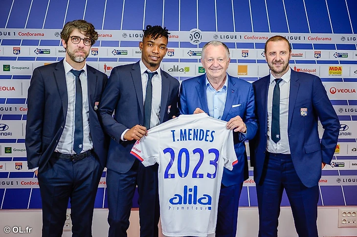Тиаго Мендес на конференции, посвященной его переходу в Лион (на фото)