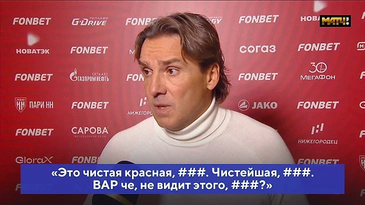 Контекст: «Спартак» разгромил «Пари НН» (3:0) и досрочно вышел в плей-офф Пути РПЛ. Но Юран вместо игры заговорил о судействе. Тренер злился из-за момента на 17-й минуте: Виктору Александрову в штрафной «Спартака» больно прилетело в лицо от Никиты Чернова, когда «Пари НН» подавал угловой. Защитник не боролся за мяч. Но главный судья и ВАР проигнорировали эпизод.