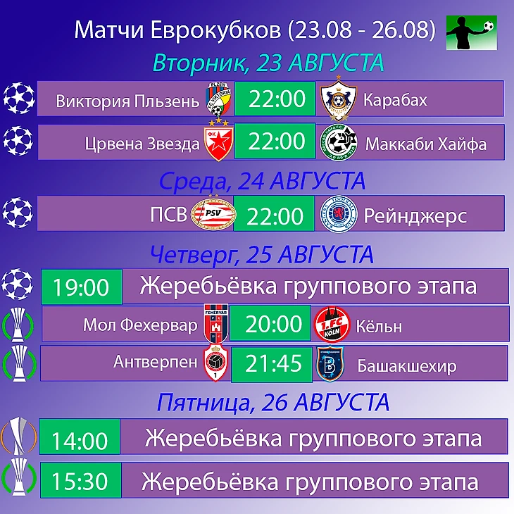 Всем привет! Заканчивается лето, начинается новый футбольный сезон. Еврокубковая осень. Российских клубов там не будет, но будут представители ТОП-лиг. 32 команды, 8 групп, 6 раундов, 4 места. Такая вот математика.