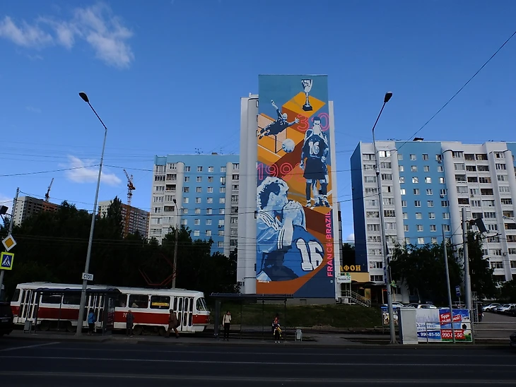 Яшин, Марадона, Негрете, Пеле, Блан и Бартез. Крутой стрит-арт в Самаре к ЧМ