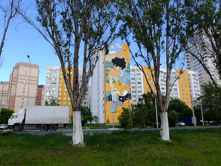 На мой вкус самый крутой мурал из тех что нарисовали в Самаре. Марадона и его "рука Бога" в характерном стиле от Вовы Nootk.