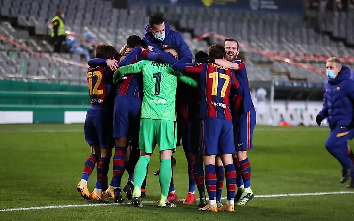 Барса является самой титулованной командой в этом турнире. Каталонцы имеют в своём активе 13 кубков. И несомненно игроки хотели увеличить эту цифру до 14. Сине-гранатовые получили по жеребьевке Реал Сосьедад, с которым им предстояло сыграть в полуфинале Суперкубка. К матчу команды подходили в одинаковом состоянии турублентности. Матч был равным и по ударам и целом по ходу игры. Основное и дополнительное время закончились результативной ничьей 1:1 и это означало, что матч переходит в серию пенальти. Вообще серия после матчевых одиннадцатиметровых ударах получилась достаточно удивительной. Игроки обоих команд аномально много мазали, а футболисты Реал Cосьедада вообще не забили три пенальти подряд, но в конце концов, удачливее оказались игроки Барсы. Интересный факт: для Барселоны эта серия послематчевых пенальти была первая за 23 года.