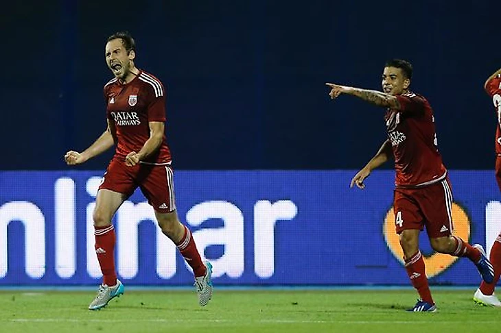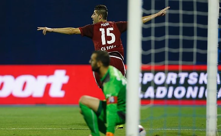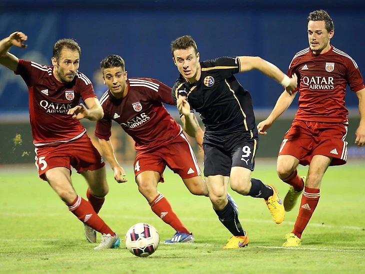 На 24-й минуте Якоба Даллеведове очень неловко свалили игроки Динамо Загреб. Перед розыгрышем штрафного поле покинул Стефано Бензи (такого похоже правильное произношение фамилии люксембургского нападающего) из-за травмы паха, и неизвестно, сыграет ли Стеф в ответном матче. Вышел на замену Жюльен Орнюсс, и очень кстати. "Бородатый Якоб" закрутил мяч в штрафную со штрафного (извинения за тавтологию), мяч отскочил очень удачно от головы вышедшего Орнюсса, и Самир Хаджи, разогнавшись, пробил по воротам Эдуарду. Вратарь был бессилен. Гол на 25-й минуте!