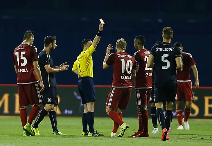 А вот после 64-й минуты пошла настоящая нервотрёпка. В тот момент матча красную карточку получил Ронни Соуту, капитан команды! Последние 30 минут я следил за матчем, будто сидя на гвоздях. У Динамо была просто уйма возможностей, но к нашему счастью они ни одну из них не реализовали. На 82-й минуте произошла любопытная замена. Вместо забившего Самира Хаджи на поле вышел Базиль Камерлинг, летнее приобретение Фолы. У Динамо, конечно, реализация подобна "дюделанжевской". 49-12 по атакам в их пользу)