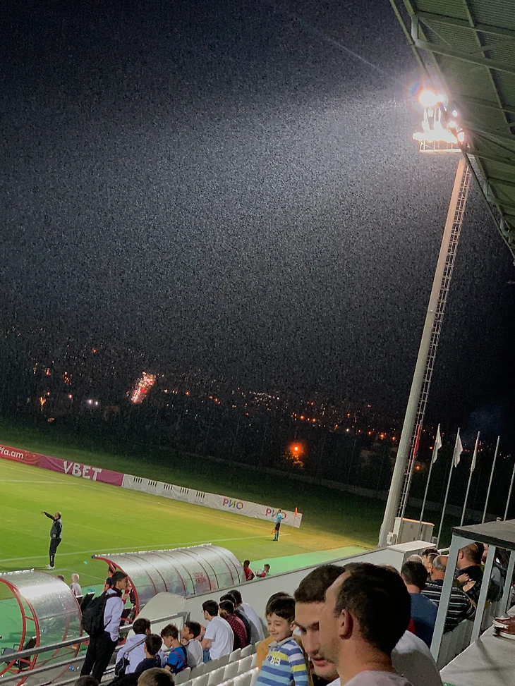 Это прям футбольная атмосфера. Хоть и в начале матча было +40. Но с минуты 30-35 начался приятный дождь и было +20-25. И прям кайфффф.