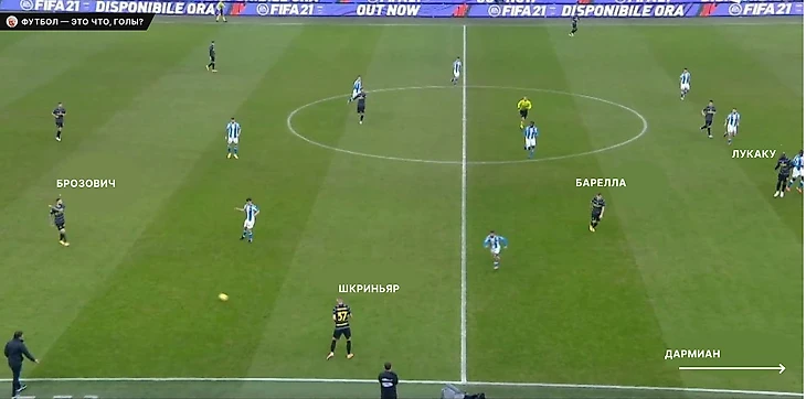 Важная деталь. Когда на поле есть Брозович, то именно он управляет всеми розыгрышами. Когда его нет - управление распределяется уже между Бареллой (справа) и Гальярдини (слева)