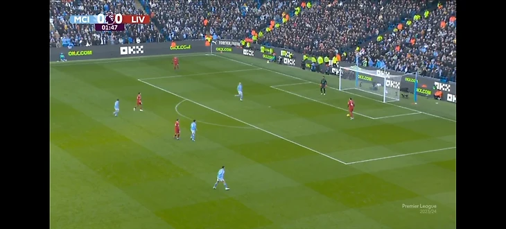 После забитого гола «Сити» в игре «Ливерпуля» мало что изменилось. Банда Клоппа пару раз вылезла в высокий прессинг, но особой пользы от этого не было. В атаках же многое строилось через фланги: Трент традиционно уходил в центр, а многое сводилось к передаче на Салаха или Собослаи, чтобы те обостряли. Получалось с переменным успехом