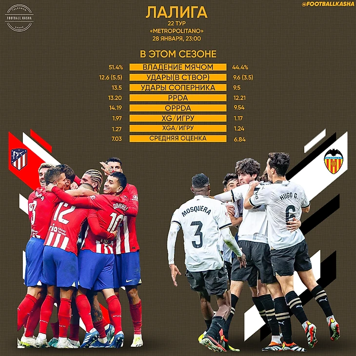 Почти десять лет назад «Валенсия» боролась с «Севильей» за звание «четвертой силы Испании». Семь лет назад «летучие мыши» выигрывали кубок Испании, в финале побеждая «Барселону». Однако управленческие «навыки» Петера Лима сделали все, чтобы команда утратила свои позиции в Испании, докатившись чуть ли не до борьбы за выживание. Но в этом сезоне, кажется, дела стали налаживаться, ведь «Валенсия» идет в нескольких очках от зоны еврокубков. По этой причине их завтрашний матч против «Атлетико» вызывает большой интерес, ведь он влияет и на борьбу за зону Лиги Чемпионов, и на борьбу за зону Лиги Европы/Конференций. Сможет ли команда дать бой банде Симеоне? Давайте смотреть!