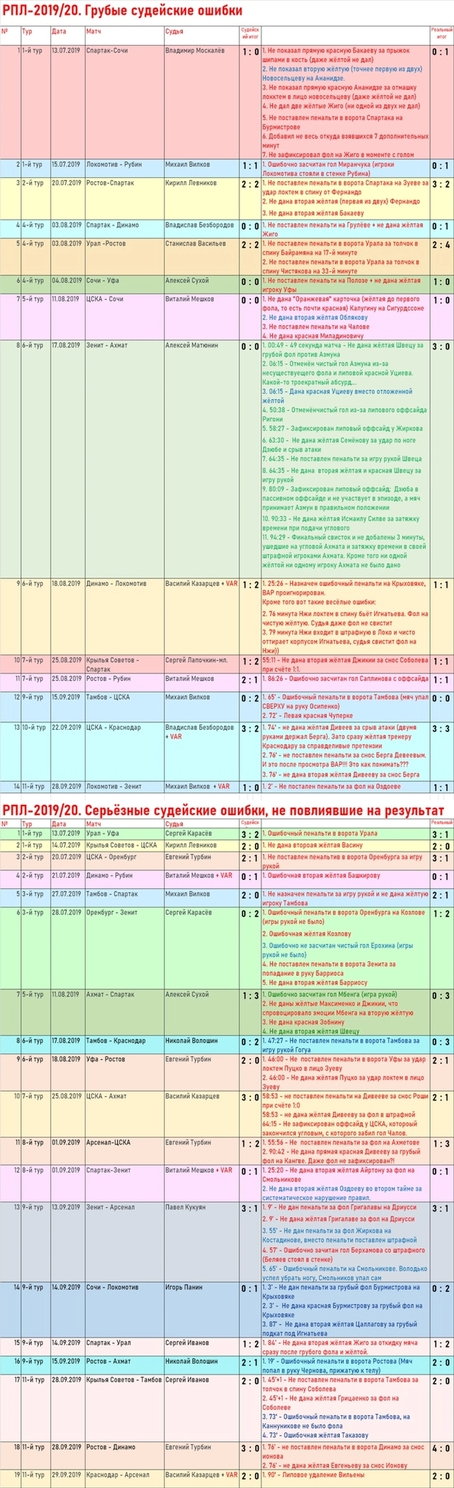 КАVARДАК! Честная таблица РПЛ-2019/2020 после 11-го тура
