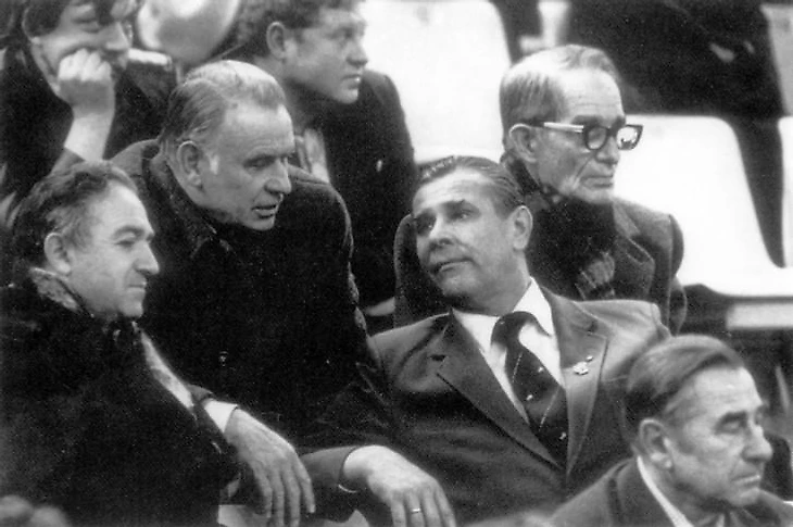 Н.П. Симонян в компании других легенд советского футбола (слева направо): К.И. Бесков, Л.И. Яшин, Н.П. Старостин