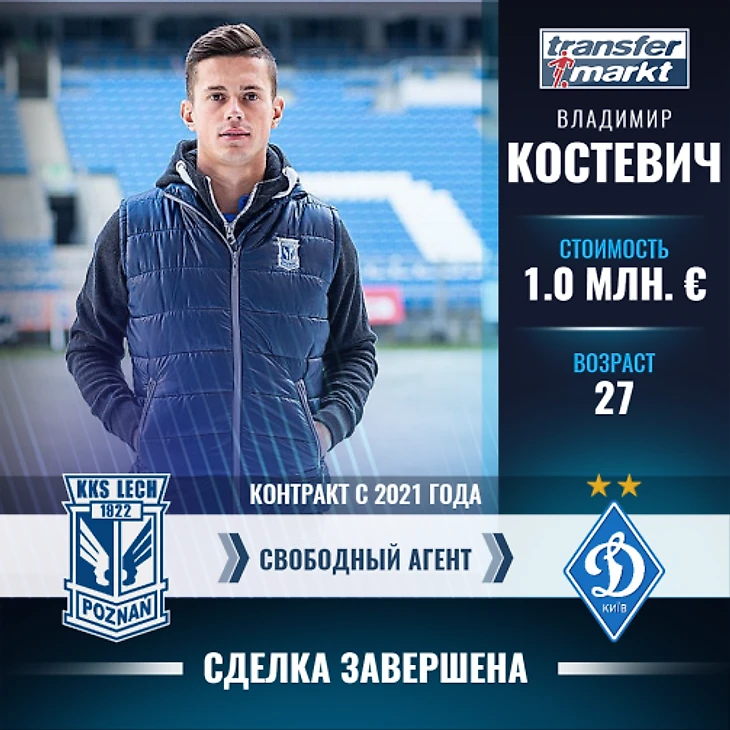 Будучи свободным агентом, подписал контракт Владимир Костевич. Однако, его контракт с польским "Лехом" завершится только в декабре, и до этого времени он будет не доступен для тренерского штаба "Динамо".