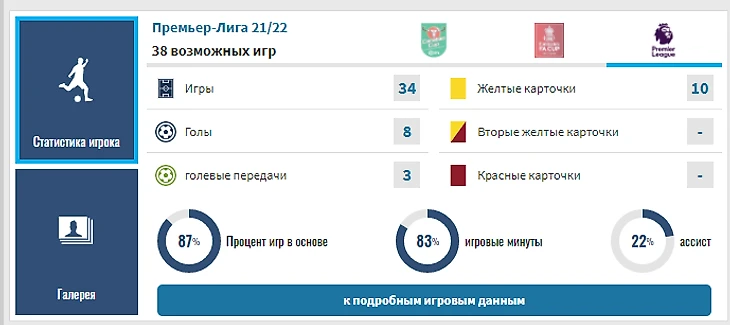 За 34 матча забил 8 голов, что как для хавбека в АПЛ очень таки прилично. Работяга еще тот из этого чудака. У Англии вообще бешенное поколение растёт. Надеюсь, что уже скоро мы увидим его во всей красе.