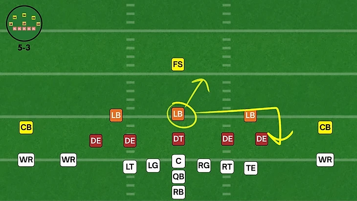 В 5-3 формации на поле располагаются пять линейных, три лайнбекера и три ди-бека. На одного ди-лайнера меньше, чем в формации 6-2, но на одного лайнбекера больше.