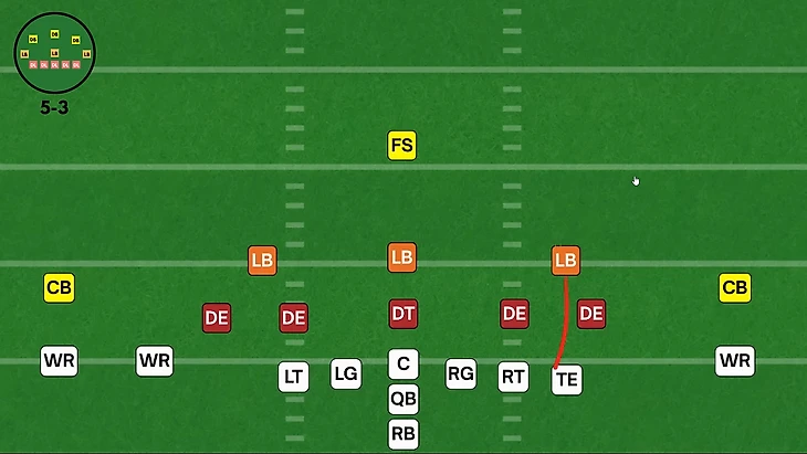 Этот дополнительный лайнбекер обеспечивает немного лучшее прикрытие паса, сохраняя при этом надежную защиту от выноса, а также дает защите возможность прикрыть короткие маршруты тайт-энда.