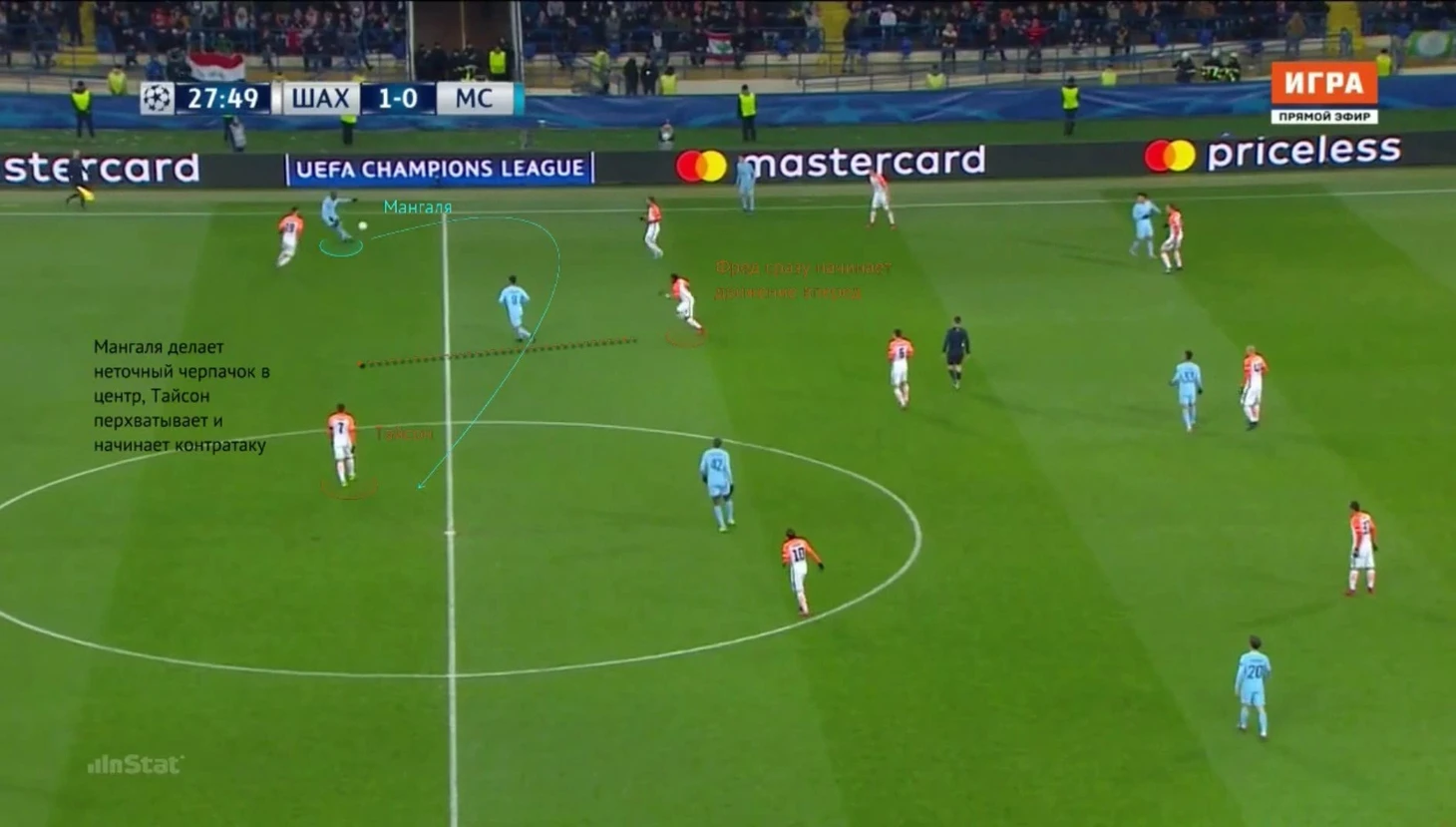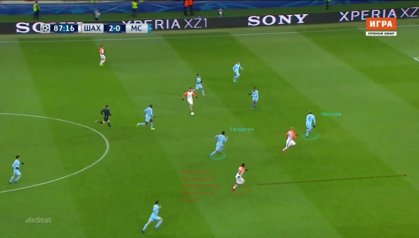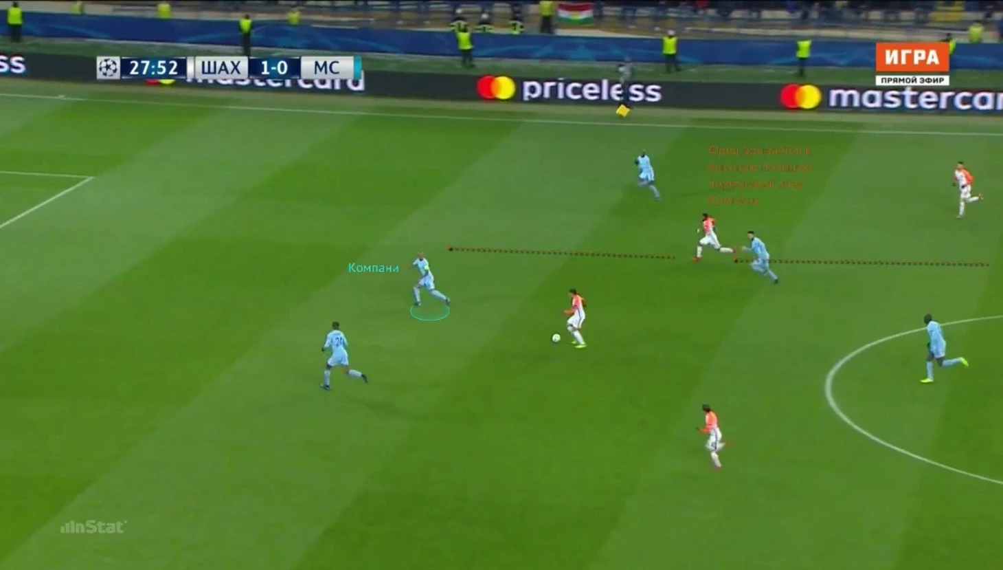 Из-за его высокой активности при обороне и постоянном давлении, которое он навязывает, Фред в Лиге Чемпионов в среднем вступает в 5,9 отборов за матч – это весомая цифра для игрока опорной зоны. Выигрывает он 53,7%, что в целом не самая плохая цифра для игрока его функционала (несмотря на то, что мы говорим об игроке, который играет в двойке опорников, это в первую очередь плеймейкер), но тут дополнительно нужно учитывать некоторые факторы: это показатели уже из матчей против топ-команд, на которые и будет ориентироваться клуб вроде «Сити». Мало кто еще имеет хороший баланс атакующих и оборонительных показателей на уровне ЛЧ.