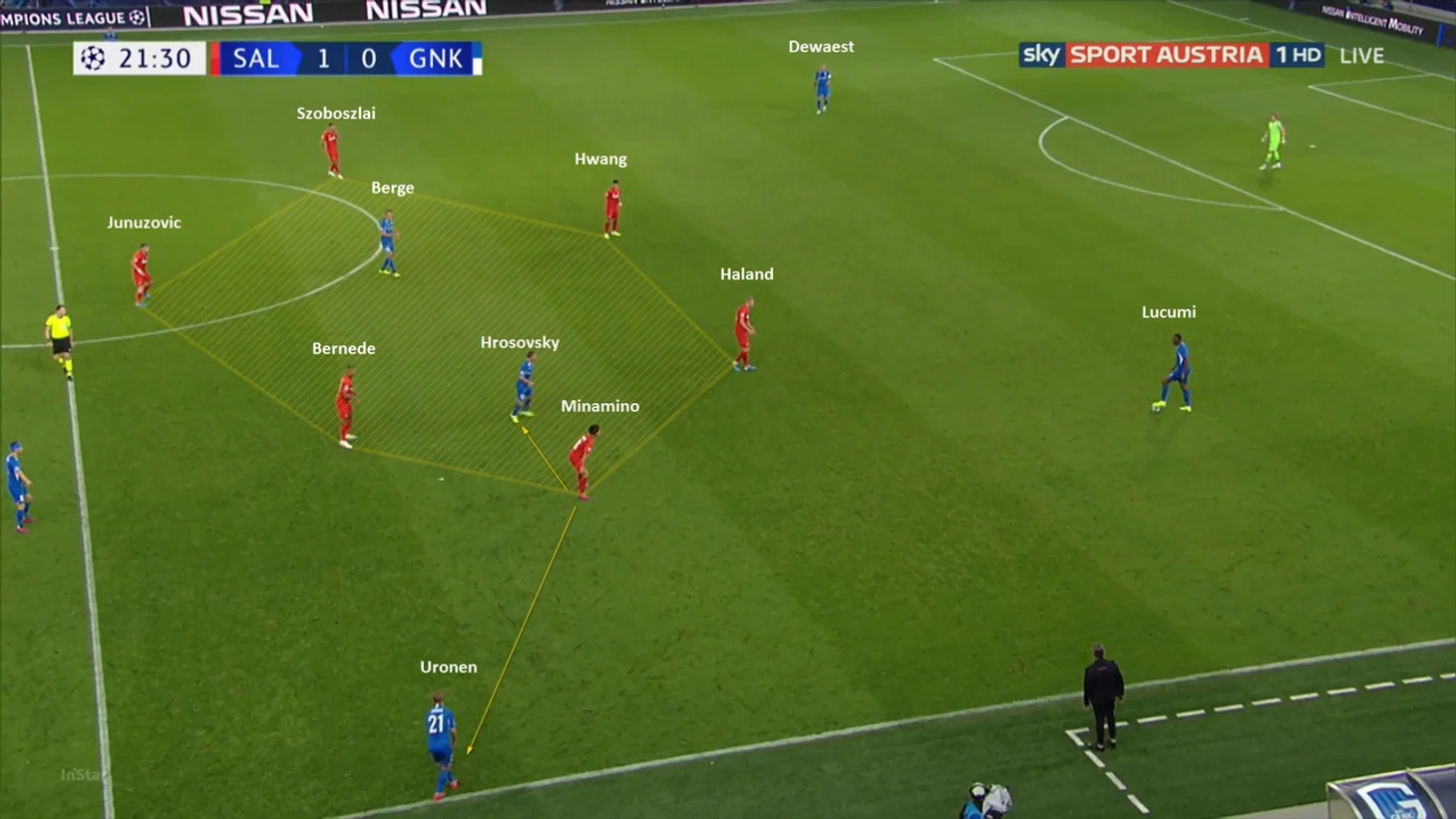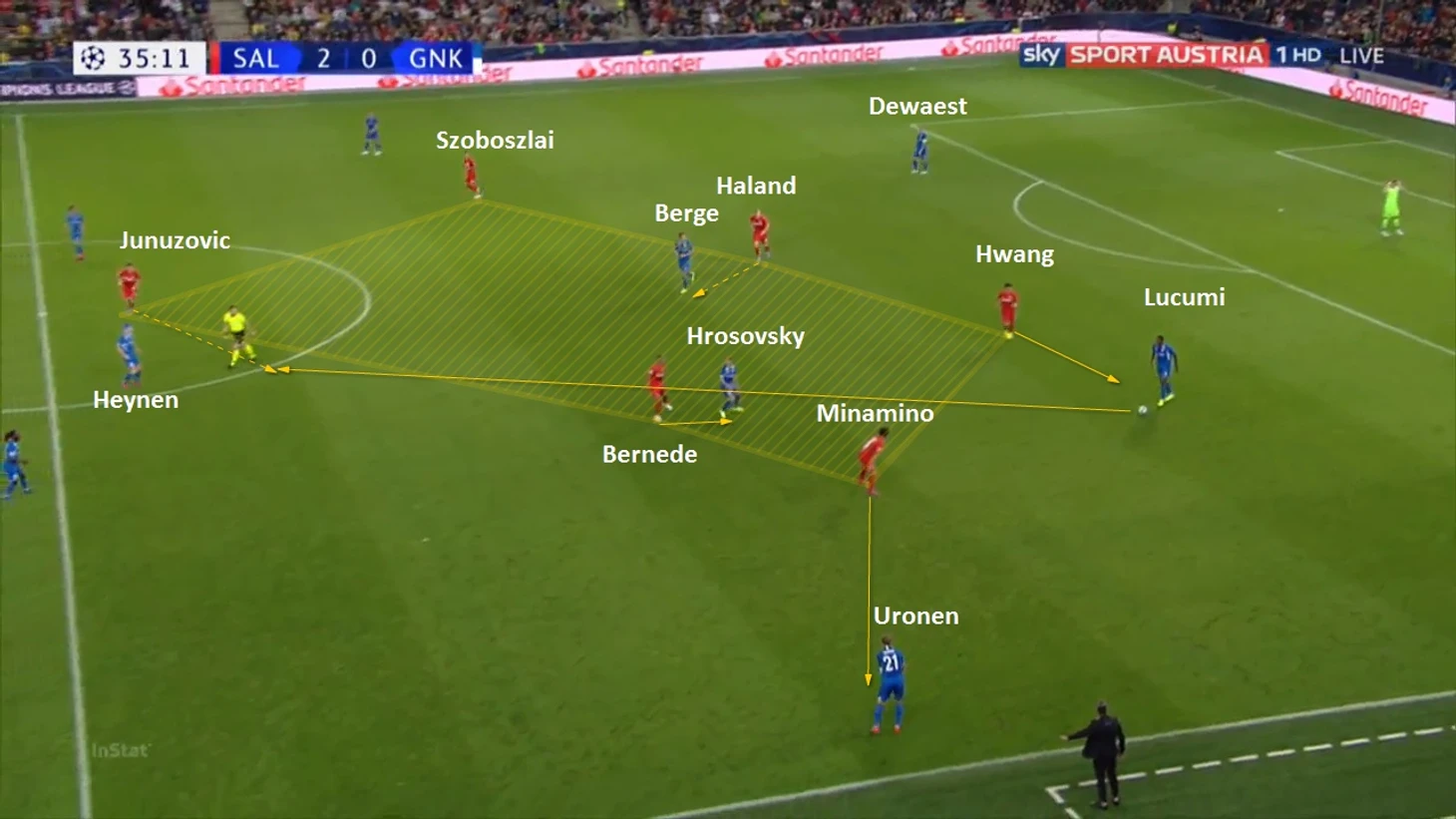 В целом, 4-2-2-2 Зальцбурга, как мне кажется, очень хорошо были продемонстрированы в первом туре против Генка.