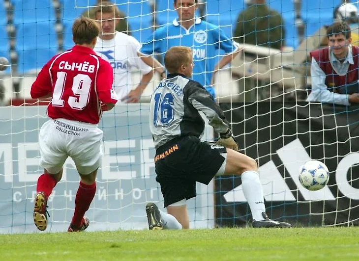 Решающим в этом матче оказался гол ещё одного молодого футболиста. Дмитрий Сычёв тогда был, вероятно, самым обсуждаемым игроком страны. Он стремительно ворвался в стартовый состав «Спартака», съездил на чемпионат мира, забил там гол сборной Бельгии, но Россия всё равно уступила в этом матче и не смогла выйти в плей-офф. Любители футбола, смотревшие тот мундиаль, наверняка помнят трогательный момент, случившийся после финального свистка - плачущего Сычёва пытался успокоить Кержаков.