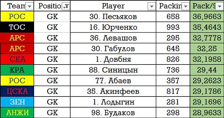 Что же касается Левашова - по итогам прошлого сезона он стал одним из вратарских packing лидеров чемпионата. Если кто не в курсе (а не в курсе, скорее всего, все), packing - это количество отрезанных (оставшихся позади) точными передачами игроков соперника. То есть если Левашов вводит мяч от ворот, то он способен оставить вне игры не только свою команду, как зачастую Александр Селихов, но и многих игроков чужой. Разумеется, нужно учитывать, что в том сезоне за Тулу играл Артем Дзюба, но результат все равно очень приличный.