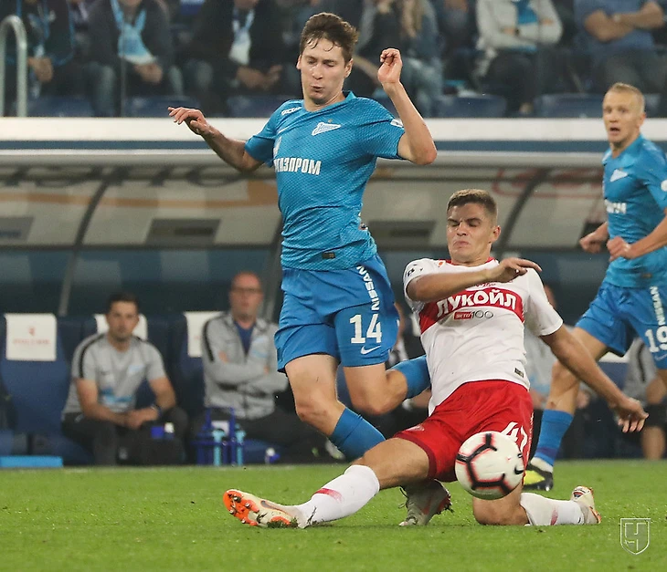 У «Спартака» впечатляющий кавалерийский рейд по левому флангу совершил Лоренсо Мельгарехо и увенчал его передачей за шиворот Андрею Луневу – защитник вовремя подстраховал первого сменщика Акинфеева и оставил Зе Луиша без гола. У «Зенита» прошла качественная дальняя диагональ со своего правого фланга на левую сторону вратарской Александра Максименко, где сине-бело-голубые перегрузили фланг Рассказова, и Александр Ерохин хорошо пробил в дальний угол – молодой вратарь в прыжке отвел угрозу.