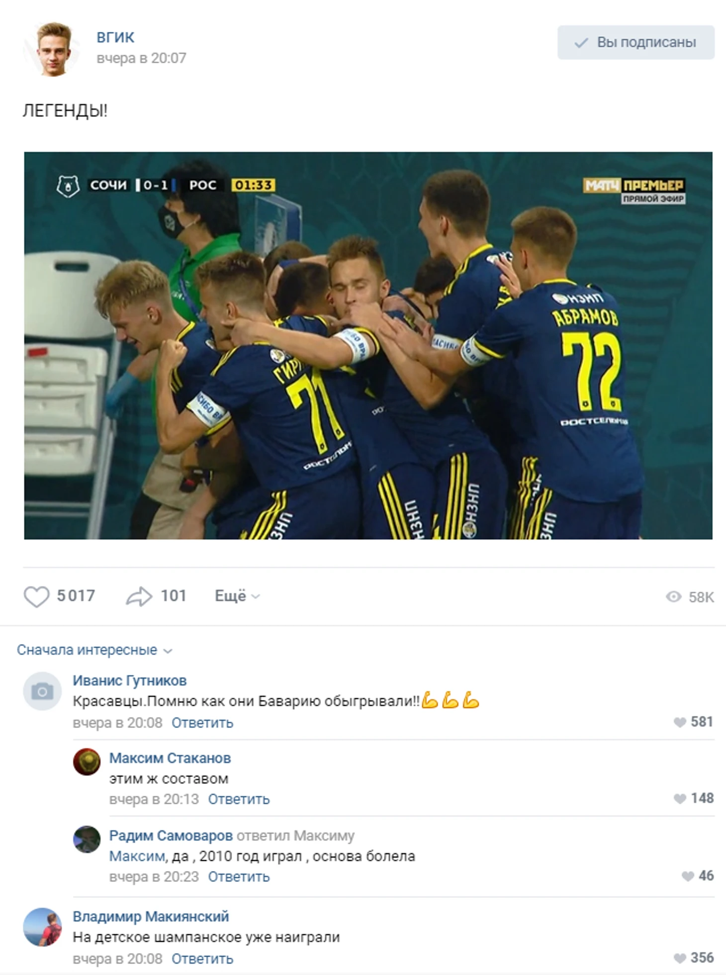 Денис Попов вышел на поле в роли вратаря молодёжки «Ростова», а ушёл лицом группы в «ВК» на 180тыс