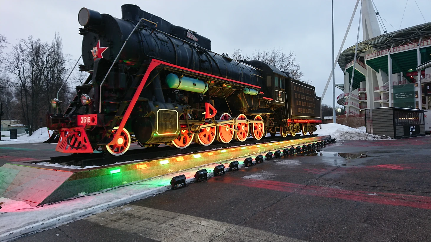 Большинство посетителей арены не могут не сделать фото с символом клуба – паровозом Л-3516.
