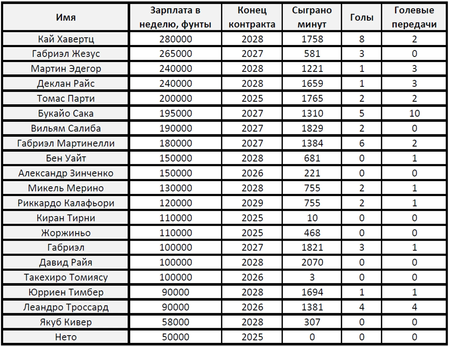 Зарплаты «Арсенала»