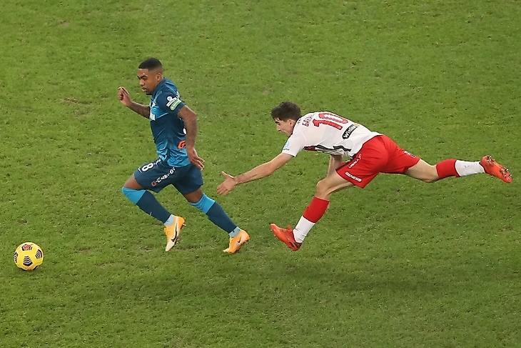 Зенит уничтожил Спартак, это факт, но это не просто разгром, это тактическая победа Семака над Тедеско. Спартак с первых минут пытался высоко прессинговать, а Зенит этот прессинг раз за разом преодолевал не забросами, как обычно, а через пас. И здесь важнейшими фигурами стали Дуглас Сантос и Вендел. Сантос как всегда был активен и на скорости вчистую переигрывал Маслова, который на него выдвигался и Мозеса, который часто не успевал. А ещё меня впечатлил эпизод перед повреждением Дугласа, он навешивал, но поскользнулся и упал, к мячу начал бежать Бакаев, а Сантос вскочил и обогнал Бакаева, настоящий профессионал.