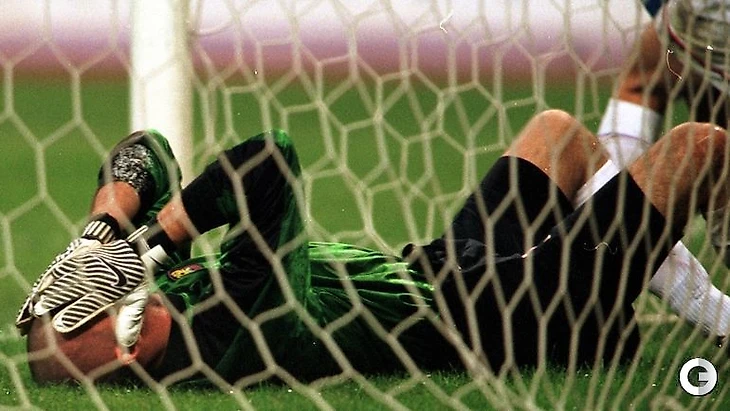 Отборочный цикл к Евро-2000 наша сборная начала неудачно. Три поражения на старте (Украина, Франция, Исландия), казалось бы поставили крест на каких-либо турнирных перспективах, но 6 (СЕМЬ) побед подряд, в том числе над Францией, превратили веру в обязанность. В последнем матче с Украиной на переполненных Лужниках нам нужна была победа и болельщики её ждали. Но удар Шевченко на 87 минуте поставил крест не только на надеждах болельщиках, но и на карьере Филимонова.