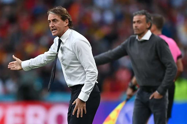 Италия - сильная сборная и индивидуально, и тактически. Схема 4-3-3 с ключевым игроком в опорной зоне - Жоржиньо, основная игра идет через фланги, где итальянцы образуют численное большинство. Иммобиле на позиции девятки часто опускается для розыгрыша, вытягивая игроков обороны. Игра Италии - классическая атакующая тактика последнего десятилетия. Манчини хорошо подстроил команду и ничего не выдумал - все это давно всем известно, но на уровне сборных все еще хорошо работает при правильном наборе игроков. Играть против такой команды можно, но для этого нужно быть физически сильной командой.