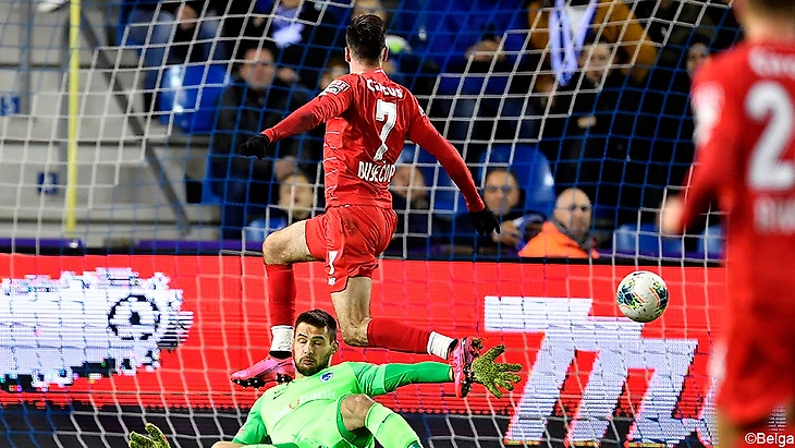 После разгромного поражения от «Сент-Трюйдена» в прошлом туре «Эйпен» неожиданно дал бой «Генту» на родном стадионе. Гости открыли счёт уже на пятой минуте: Де Вольф отразил удар Мохаммади из-за пределов штрафной, но на добивании был точен Дэвид. «Эйпен» не растерялся и тут же сравнял. Каминский занял неудачную позицию в воротах и не успел среагировать на внезапный дальний удар Превляка. Вскоре «Гент» снова вышел вперёд. Дэвид выбежал один на один с голкипером, ловко обыграл его и катнул мяч в пустые ворота. Забив 15-й гол в сезоне, канадец поравнялся с лидером гонки бомбардиров Мбокани.