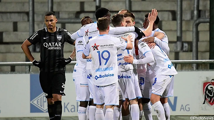 Сильный ветер, слабая игра — так можно описать весь первый тайм. Моментов было мало: единственный нападающий «Кортрейка» Моффи пробил в Дютуа после ошибки Фаса, а «Остенде» ответил приличным дальним ударом Юльсагера. Незадолго до перерыва защитник хозяев Санне, арендованный у «Андерлехта», мог отличиться в дебютном матче, но совсем не попал в створ после навеса с углового. Во втором тайме у «Кортрейка» значительно лучше получалось справляться с соперником и непогодой. На 59-й минуте Моффи исправился за упущенную возможность: на скорости обработал мяч после заброса Де Сарта, обыграл Миловича и не оставил шансов Дютуа.