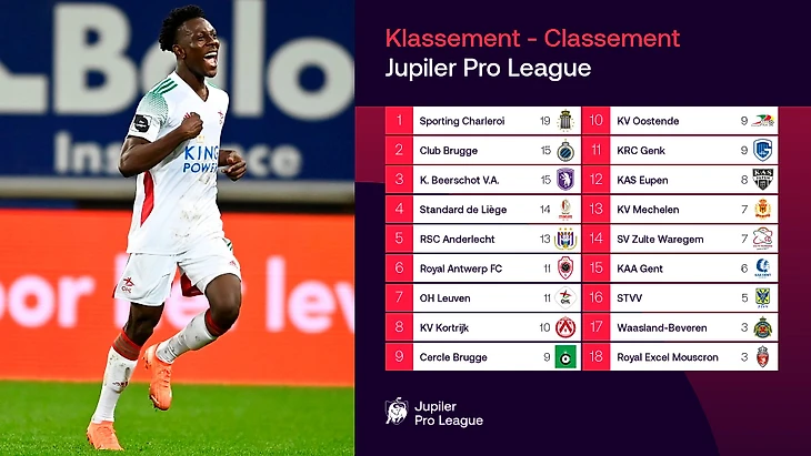 «Шарлеруа» впервые потерял очки, «Брюгге» снова выиграл дерби, «Берсхот» одержал волевую победу, забив на 95-й минуте
