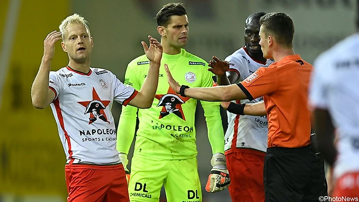 Вот хронология событий: в концовке ван ден Боссхе сравнял счет, но главный арбитр Уэсли де Кремер, ориентируясь на подсказки коллег, пошел смотреть видеоповтор, увидел офсайд и отменил гол. Это решение вызвало негодование у Ива Вандерхаге, за что главный тренер «Кортрейка» был тут же удален. Через пару минут судье пришлось снова воспользоваться системой VAR, чтобы увидеть, попал ли мяч после удара Селемани в руку Опаре. Оказалось, что попал – пенальти! Де Кремер показал Опаре желтую карточку, Домпе за нападение на Сейнсбери – прямую красную, а затем, уже на седьмой добавленной минуте, Мбойо с точки сравнял счет.