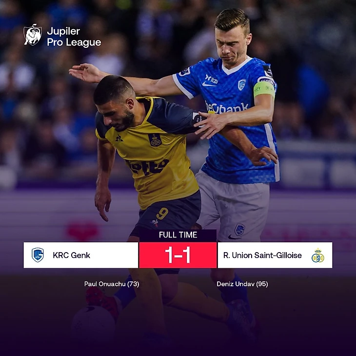 Гости бодро стартовали и чуть не наказали соперника за оплошности, а потом инициативу перехватил «Генк», но гола пришлось ждать довольно долго. Онуачу, которому помешали забить штанга и вратарь Морис, все-таки забил, но с точки. «Юнион» не только получил пенальти в свои ворота, но и лишился защитника Багера – однако, как ни странно, после удаления заиграл даже лучше и пошел в атаку. Наградой за смелость стал гол с углового на пятой добавленной минуте и ничья, которую главный тренер «Генка» Джон ван ден Бром считает справедливым исходом: «Когда выходишь вперед на 75-й минуте, да еще и остаешься в большинстве, нельзя проводить последние 15 минут так, как мы. Закрался страх, появилась неорганизованность, указания не выполнялись».