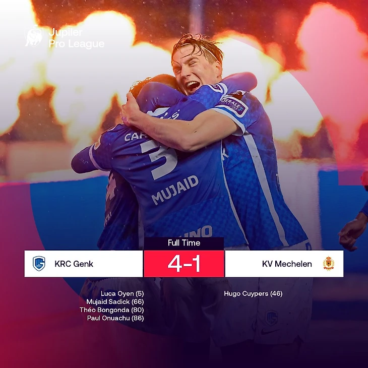 Матч начался для «Генка» идеально: уже на пятой минуте Ойен открыл счет с разрезающей передачи от Трезора. А в середине первого тайма Майк перехватил мяч после неудачного паса Сторма и сделал еще одну – теперь на Онуачу. Защитник «Мехелена» Пер срубил Пола подкатом и был удален за фол последней надежды.