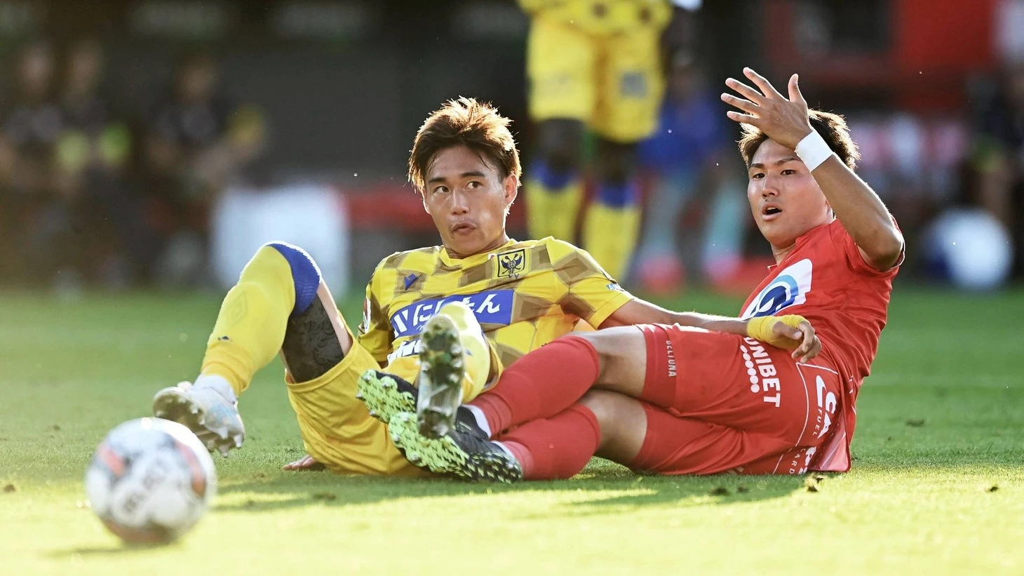 👘 В «Кортрейке» это защитник Цуеси Ватанабэ (на фото справа) и опорник Сатоси Танака. Один приехал в январе, второго арендовали летом. Это первые легионеры из Японии в истории клуба.