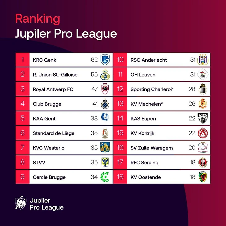 Сегодня в блоге «Про-Лига» – обзор 24-го тура регулярного первенства чемпионата Бельгии. Матчи проходили 3, 4 и 5 февраля.