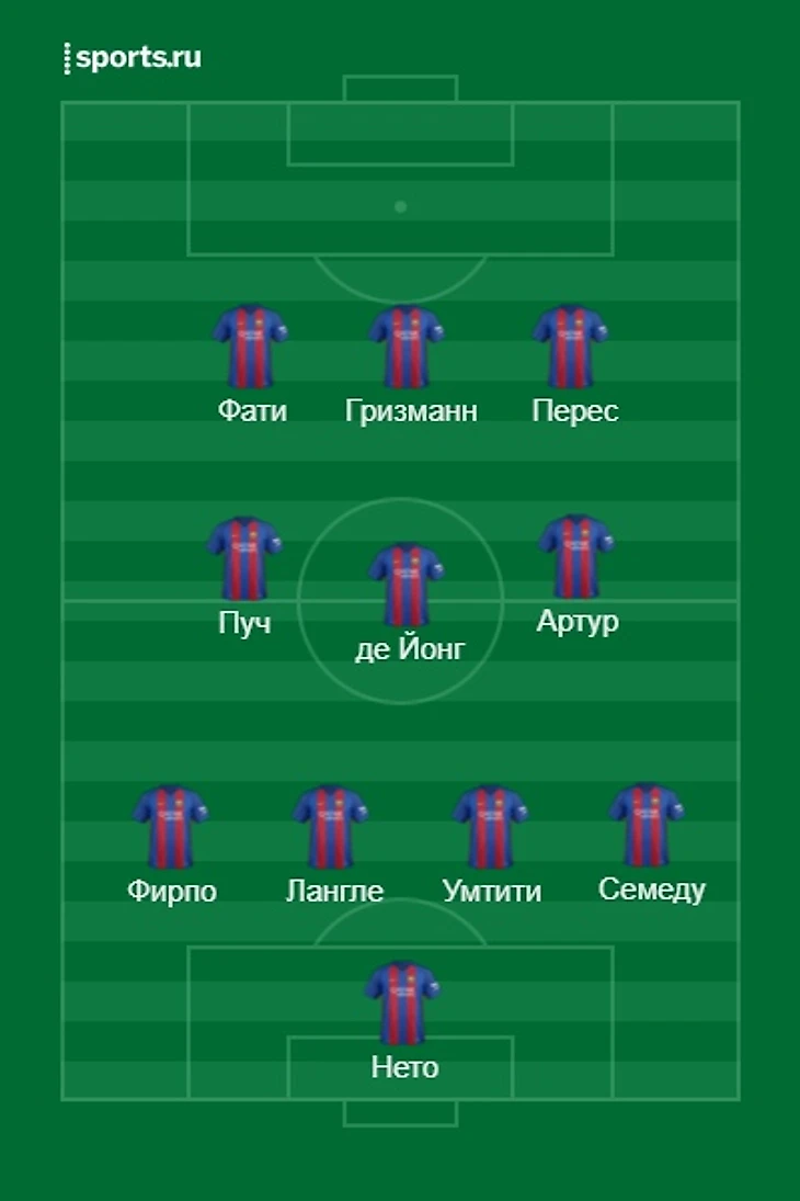 Заявка сине-гранатовых на матч:Тер Стеген, Семеду, Ракитич, Артур, Нето, Лангле, Гризманн, Альба, Серджи Роберто, де Йонг, Видаль, Умтити, Фирпо, Перес, Пуч, Руис, Фати, Чуми.