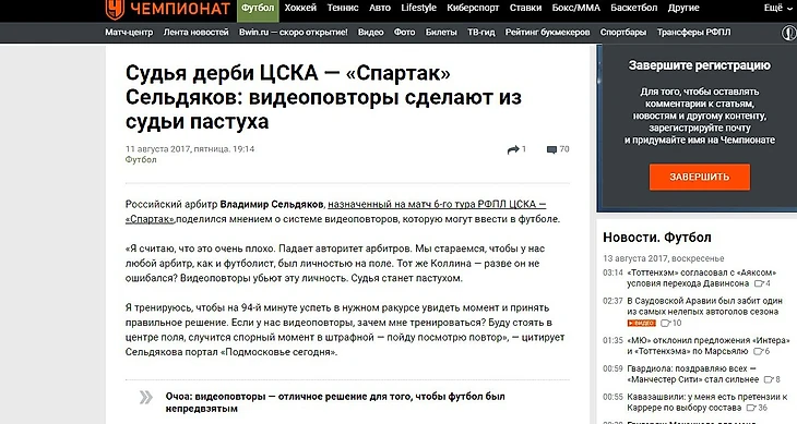Прочитал, статью арбитра о вреде видеоповторов на личность судей: